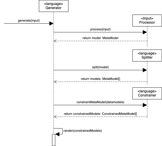 Each generator requires a different splitting of the meta models because it varies which should be rendered as is, and which need to be rendered separately.